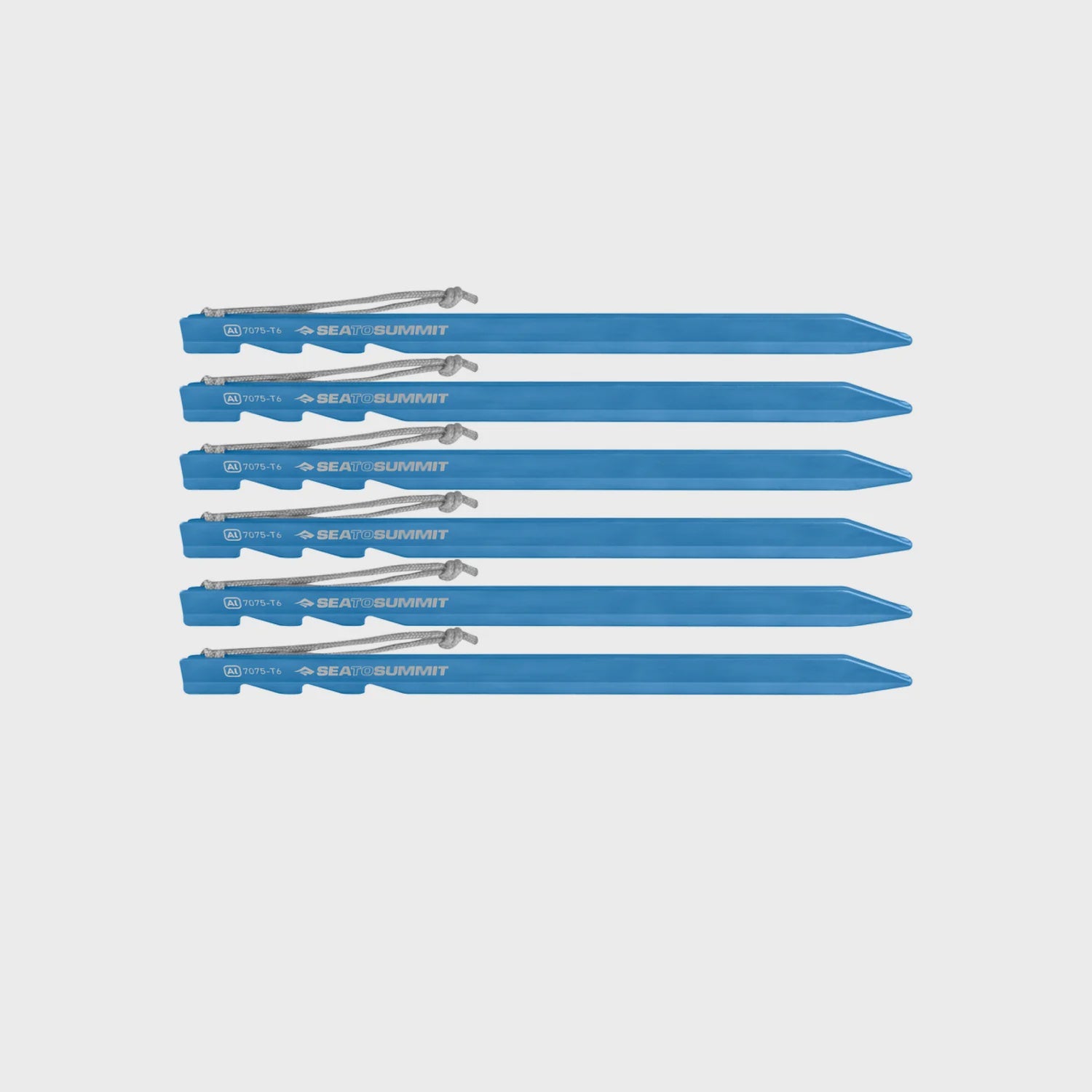 Standard equipment on all Alto and Telos tents, our ultralight yet super strong Ground Control Light Tent Pegs are also available separately. Our unique TriPoint shape has a wide front face to maximize grip in varying terrain while the short spine increases rigidity. The unique multiple notches allow guy cord attachment closer to the ground for more secure anchoring. These ultralight tent pegs are made from premium aircraft grade 7075-T6 aluminum alloy that is exceptionally strong and rigid—yet each peg weighs just 0.25oz / 7g.