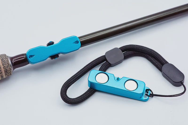 The Rod Rack is a two-part system designed to hold your fly rod securely during fly changes, fish releases, snack time, and any other situation where you might need to set your rod down for a minute. The base plate securely attaches to the butt of your rod with a strong rubber clasp, while the top magnet is easily attached to your waders, pack, or vest. Get them close, and click, your rod is secure.